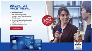 Kostenlose American Express + Dauerhaft kostenlos + Jede Kartenzahlung punktet: 1 °P pro 2 € Umsatz + 4000€ EXTRA Punkte